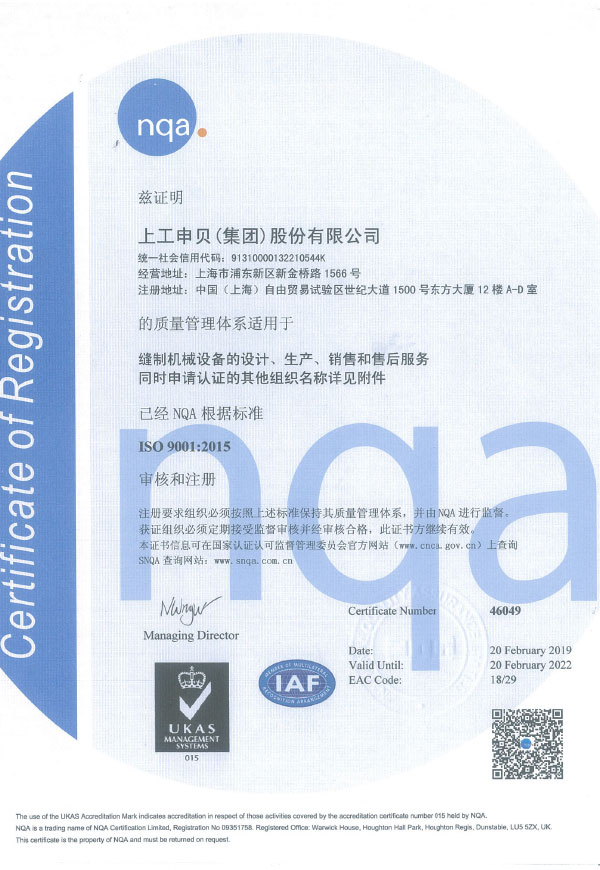 上工集团公司质量管理体系认证证书